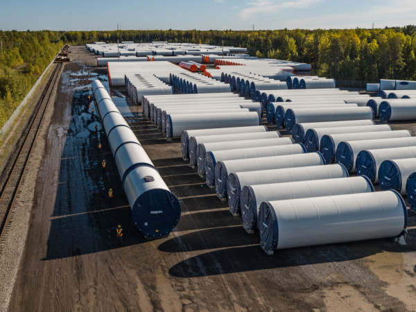 Notre client nous a donné le mandat de fabriquer les tours d’éoliennes les plus hautes et les plus lourdes jamais faites en Amérique, d’une hauteur de 134 mètres (440 pi) et d’un poids de 450 tonnes (450 000 kg). Le projet comprenait 87 tours de 7 sections chacune pour un total de 609 sections à livrer dans un délai restreint.